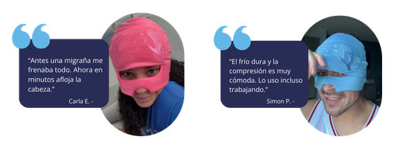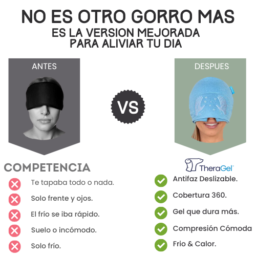 Antes, los gorros solo tapaban la frente. Hoy, THERAGEL alivia toda la cabeza y se adapta a tu rutina, con frío que dura más y un antifaz que podés subir o bajar según lo necesites.